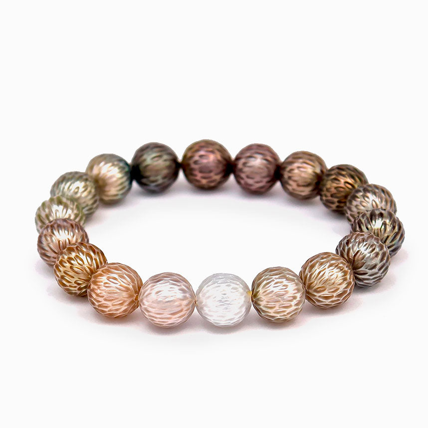 Magnífica pulsera en perlas de Tahití con 18 perlas gravées - Colección Aurora
