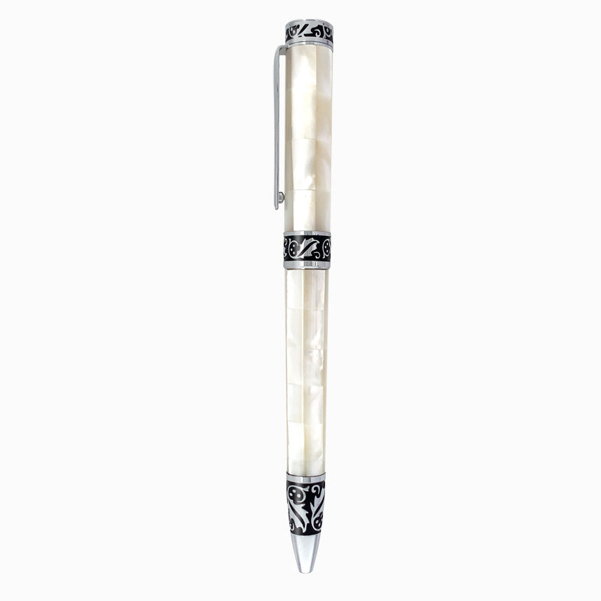 Stylo à bille cromado arrondi en nácar ondulée